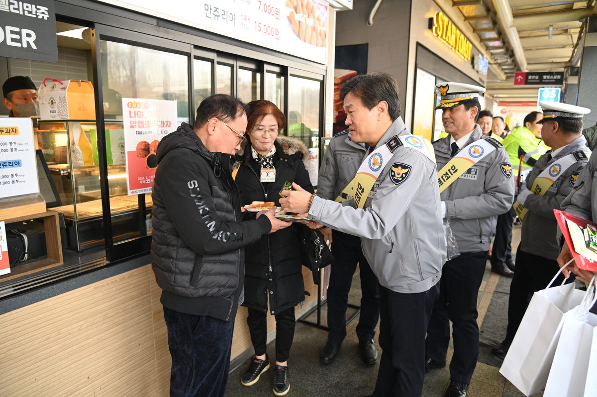 최현석 강원경찰청장은 “설 연휴 전통시장, 공원묘지, 주요 관광지 등 통행량이 많은 장소와 주요 교차로에 경찰관을 충분히 배치해 특별교통관리를 실시하고 있으니 운전자분들도 안전한 귀성·귀경길을 위해 교통법규를 준수해 달라”고 말했다.