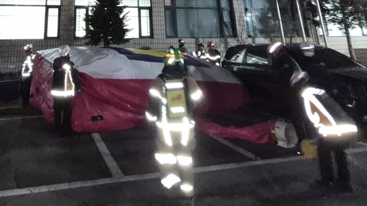 현장엔 만일의 상황을 대비해 에어 매트 등 안전장치가 설치됐고 경찰 설득 끝에 A 씨는 40여 분만에 스스로 내려왔습니다.