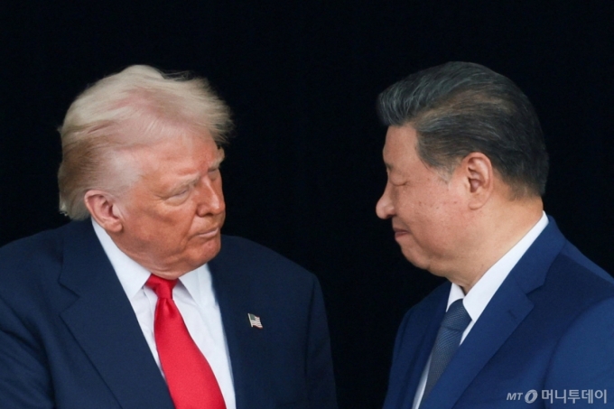 (부산 로이터=뉴스1) 강민경 기자 = 도널드 트럼프 미국 대통령과 시진핑 중국 국가주석이 30일 부산 김해공항에서 만나 회담하기 전 악수를 나누며 서로를 응시하고 있다. 2025.10.30 ⓒ 로이터=뉴스1 Copyright (C) 뉴스1. All rights reserved. 무단 전재 및 재배포, AI학습 이용 금지. /사진=(부산 로이터=뉴스1) 강민경 기자 |