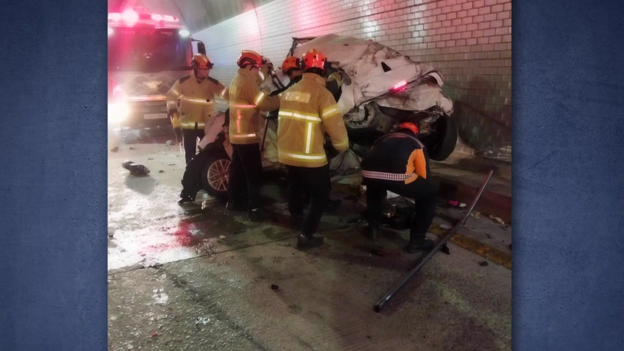 오늘 새벽 경남 거제에서 터널 안을 달리던 SUV가 경차를 들이받아 경차 운전자가 숨졌습니다.
