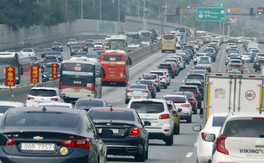 서울을 빠져나가는 차량은 새벽 5시 전후부터 늘어나기 시작했다. 정체는 정오 무렵 가장 극심할 것으로 예상된다.