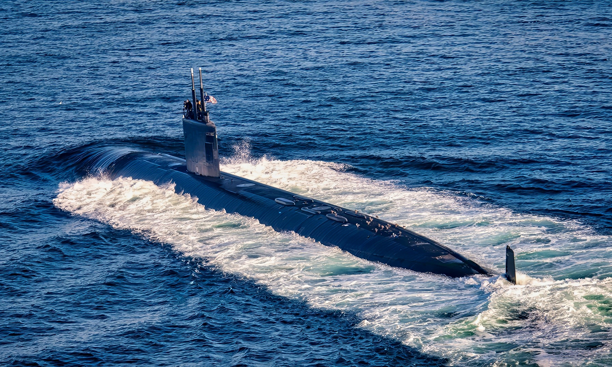 미 해군 버지니아급 핵추진잠수함이 시험운항을 위해 먼 바다로 이동하고 있다. 세계일보 자료사진 |