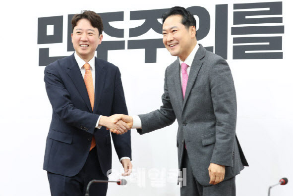 장동혁(오른쪽) 국민의힘 대표와 이준석(왼쪽) 개혁신당 대표 [이데일리 노진환 기자] |