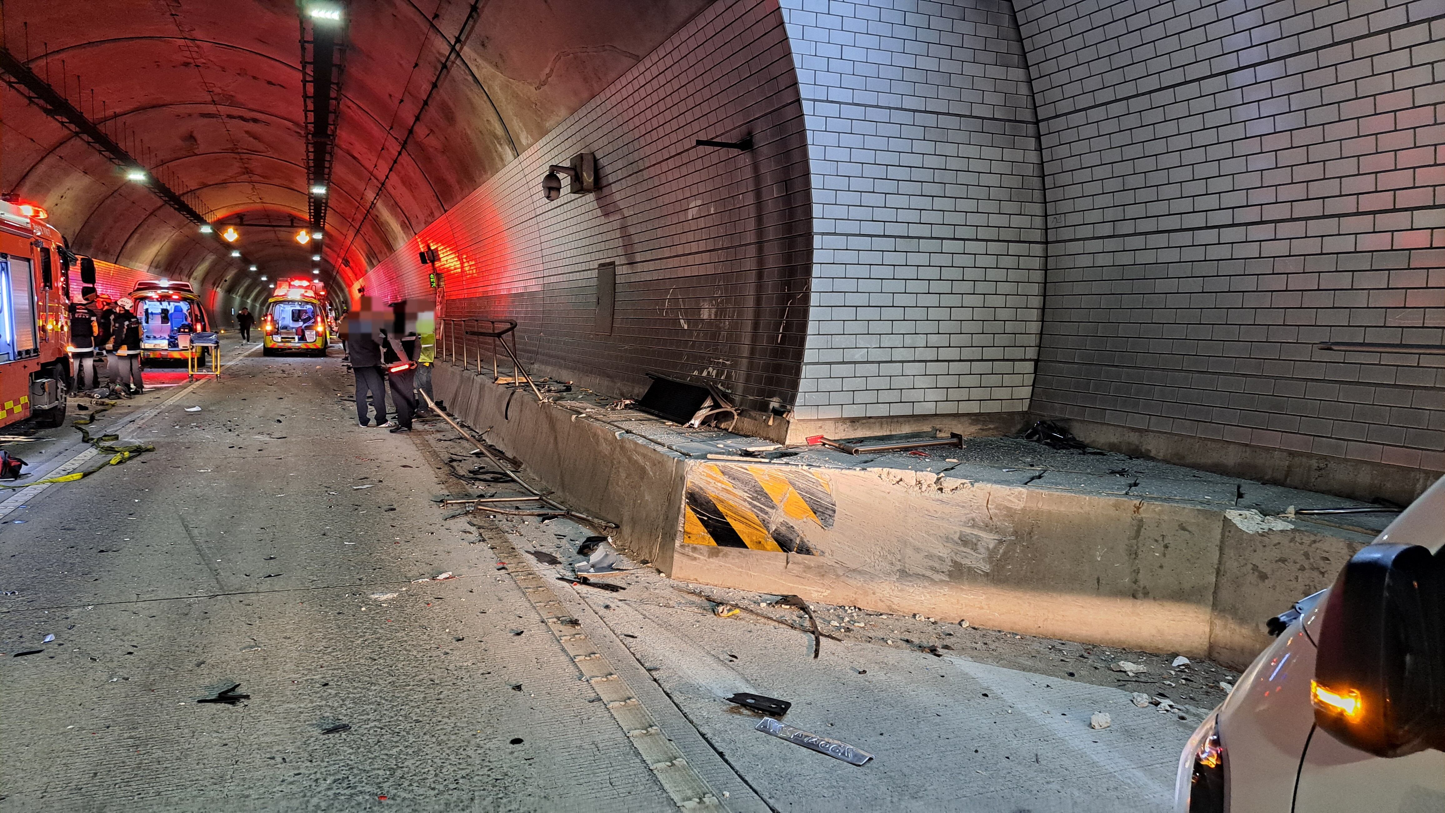 15일 오전 경남 거제 한 터널에서 발생한 사고 현장. /독자제공 |