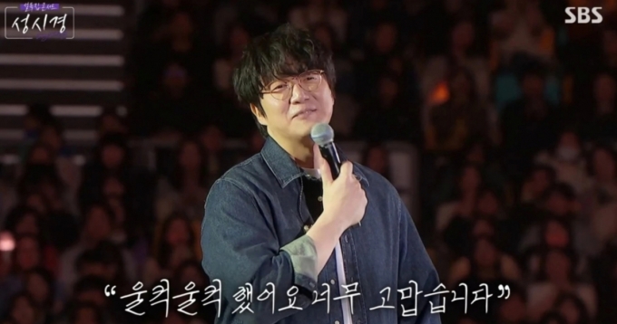 오랜 기간 함께 일해왔던 매니저로부터 금전 피해를 입은 것으로 알려진 가수 성시경이 콘서트에서 눈물을 보였다. /사진=SBS '설 특집 콘서트 성시경' |
