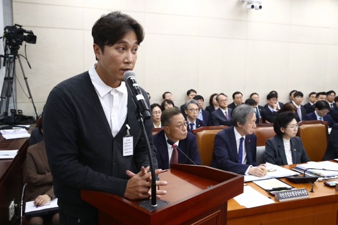 정신건강의학과 전문의 겸 방송인 양재웅씨가 서울 여의도 국회에서 열린 보건복지위원회의 복지부 등에 대한 종합 국정감사에 증인으로 출석해 자신의 병원에서 발생한 환자 사망 사고와 관련한 의원 질의에 답하고 있다. 2024.10.23 뉴스1 |