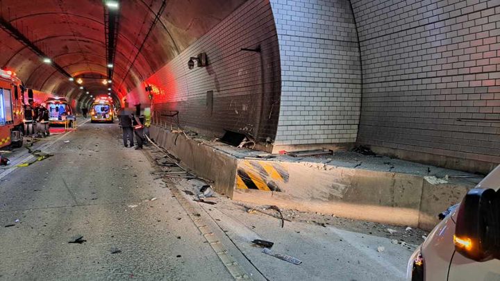 [거제=뉴시스] 신정철 기자= 15일 새벽 0시 40분께 경남 거제시 양정터널에서 30대 여성 A 씨가 몰던 제네시스 SUV가 앞서가던 모닝 승용차를 들이받아 승용차 운전자인 40대 남성이 숨졌다.사진은 양정터널 내 사고현장 모습.(사진=거제경찰서 제공).2026.02.15. photo@newsis.com *재판매 및 DB 금지 |