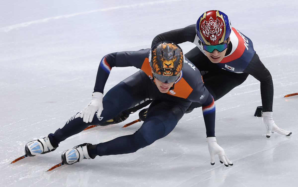 14일(현지시간) 이탈리아 밀라노 아이스스케이팅 아레나에서 열린 2026 밀라노-코르티나담페초 동계올림픽 쇼트트랙 남자 1500m 결승전에서 황대헌이 역주하고 있다. 연합뉴스 |