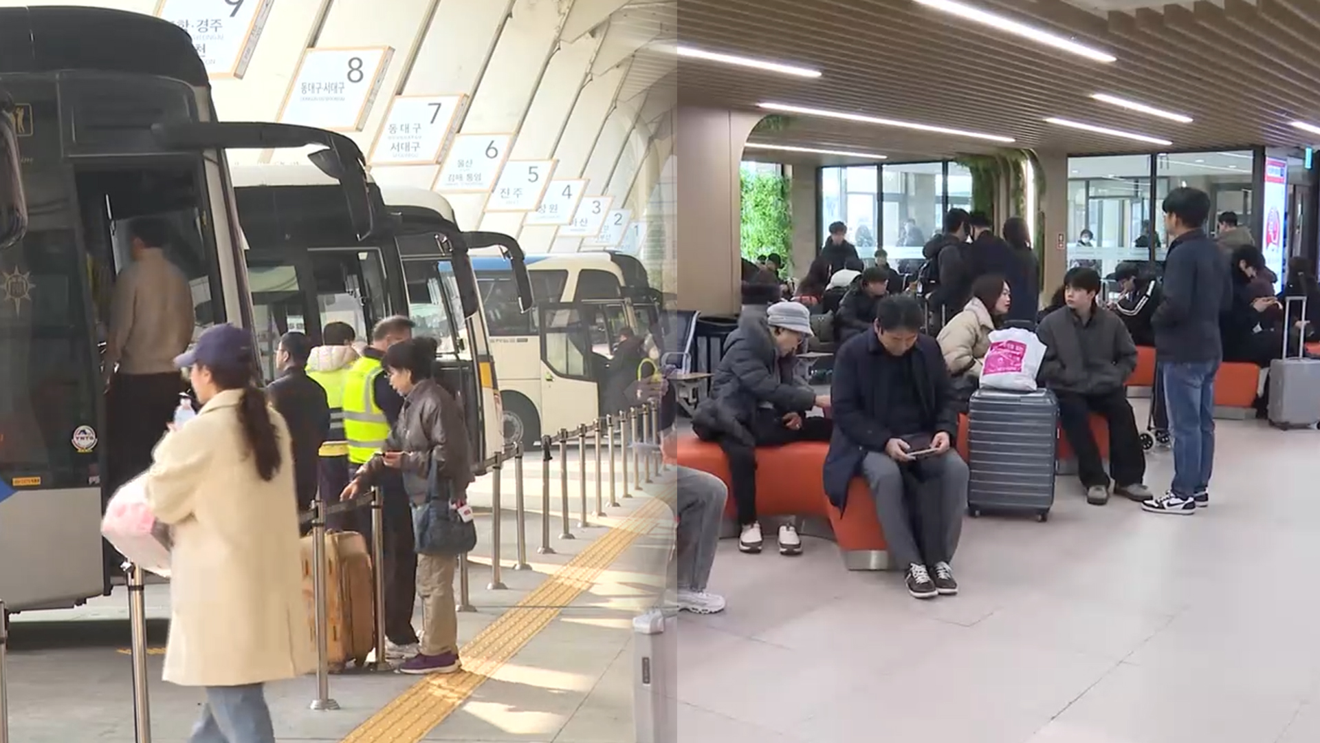 설 연휴 둘째 날인 오늘(15일)도 귀성 행렬이 이어지면서 고속버스터미널도 북적이고 있습니다.