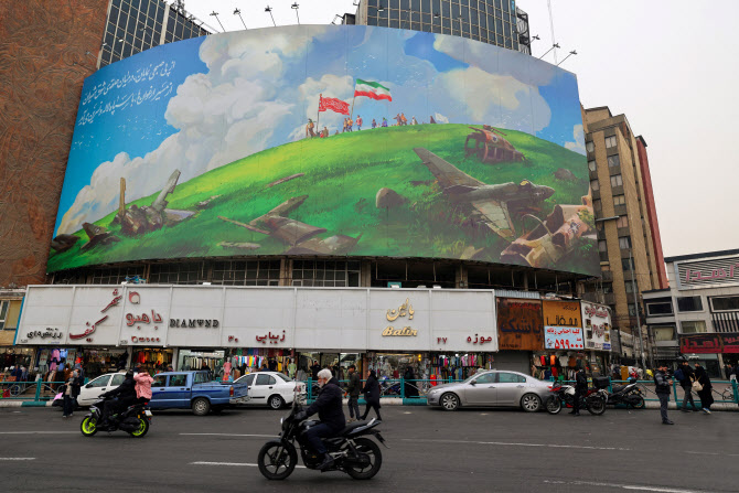 이란 테헤란의 발레아레스 광장에 있는 한 건물에 전시된 반미 광고판.(사진=AFP) |
