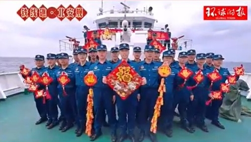 관영매체 환구시보는 14일(현지시간) 이들 해역에 대해 "(중국이) 이미 상시적·입체적으로 관리·통제하는 중국 도서에서 당직 순시 임무를 맡은 중국 해경선이 풍부한 형식으로 춘제를 즐겁게 보낼 것"이라며 관련 영상을 소개했다.