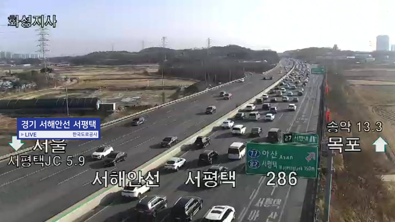 목포 방향 도로 위에 귀성 차량이 몰려 서행하고 있는 모습입니다.