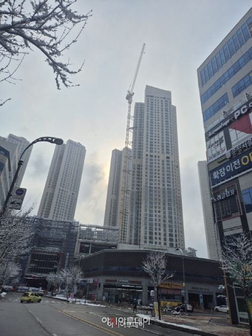 파주에 위치한 아파트 공사 현장. /이철현 기자 |
