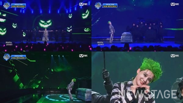 기발한 상상력과 화려한 볼거리로 화제를 모은 뮤지컬 '비틀쥬스'(제작 CJ ENM)의 타이틀롤 김준수를 비롯한 배우들이 지난 12일 Mnet '엠카운트다운'에서 스페셜 스테이지를 선보였다.