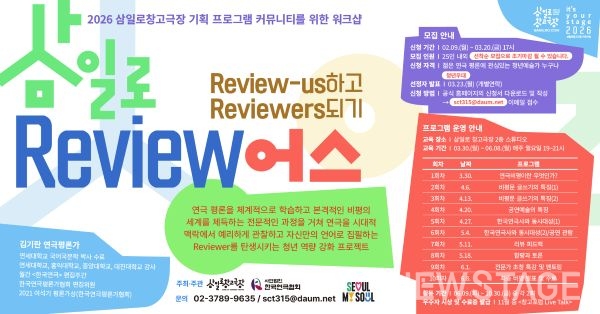 삼일로창고극장이 2026년 새롭게 신설한 커뮤니티를 위한 워크숍 부문의 청년 역량 강화 프로그램, '삼일로 Re-view 어스(삼일로 리뷰어스)'의 참여자 모집을 지난 9일(월)부터 시작했다.