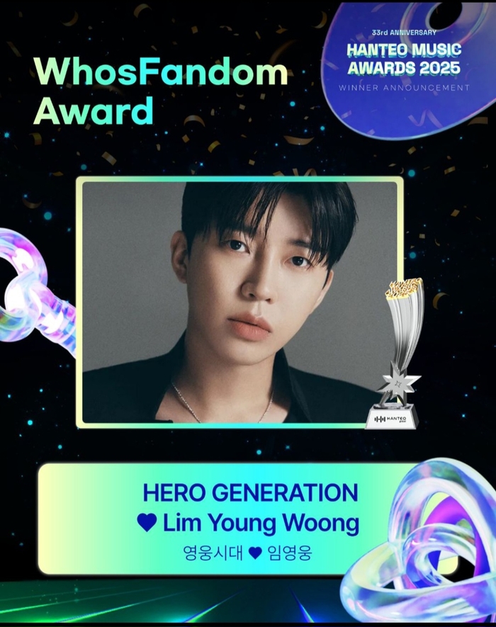 가장 먼저 글로벌 팬 투표 100%로 결정되는 후즈팬덤상을 품에 안았다. 2023년(31주년), 2024년(32주년)에 이어 3년 연속 수상이다. 이어 인기상까지 추가했다.