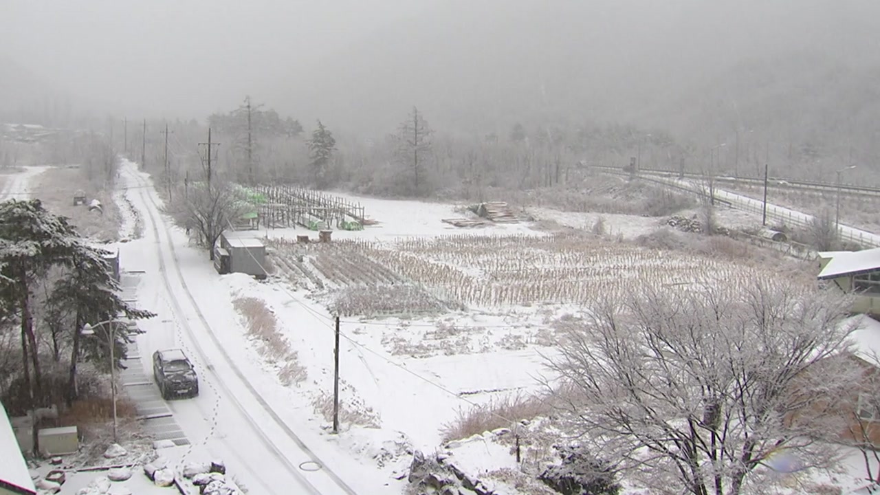 특히 오전까지 강원 북부 동해안에 시간 당 1에서 3센티미터의 강한 눈이 오겠고/ 오후까지 강원 산간을 중심으로 습하고 무거운 눈이 내립니다.