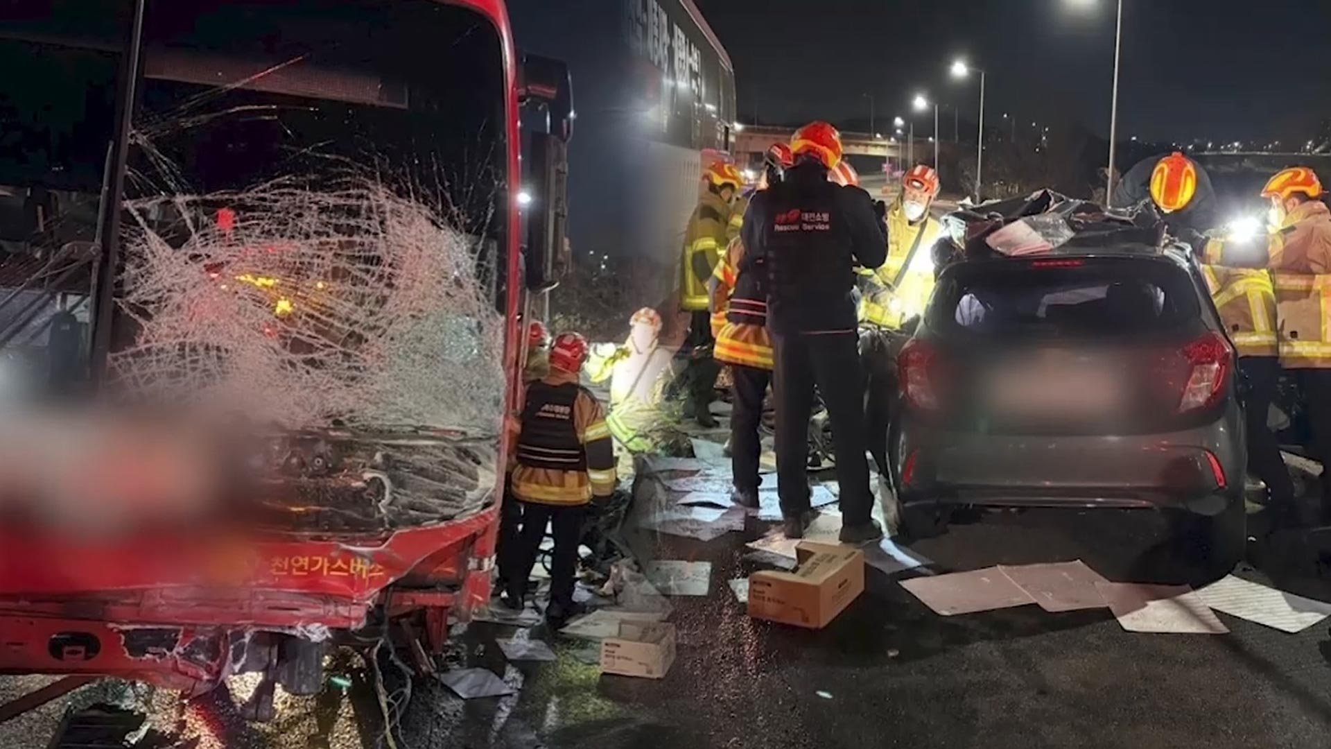 이 사고로 A 씨가 숨지고 버스 승객 4명이 다쳐 병원으로 옮겨졌습니다.
