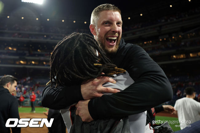 [사진] 애리조나 메릴 켈리가 2023년 월드시리즈 진출이 확정된 뒤 기뻐하고 있다. ⓒGettyimages(무단전재 및 재배포 금지) |