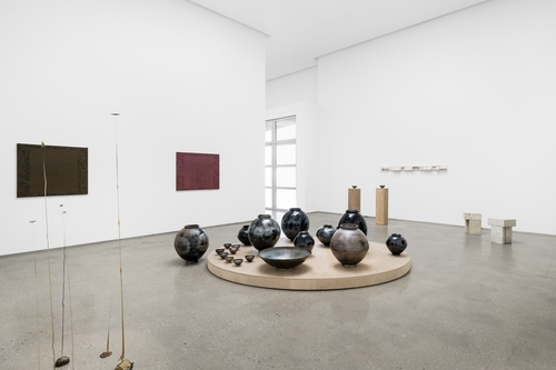 물에 불린 닥 반죽을 캔버스 위에서 두 손으로 주무르고 펼친 후, 서서히 응고시키며 만드는 정창섭의 단색화 연작 '묵고'와 흙과 나무 같은 천연 소재와 금속, 아크릴 물감 등의 인공 재료를 손의 감각으로 결합하는 구현모의 작업도 만나볼 수 있다.