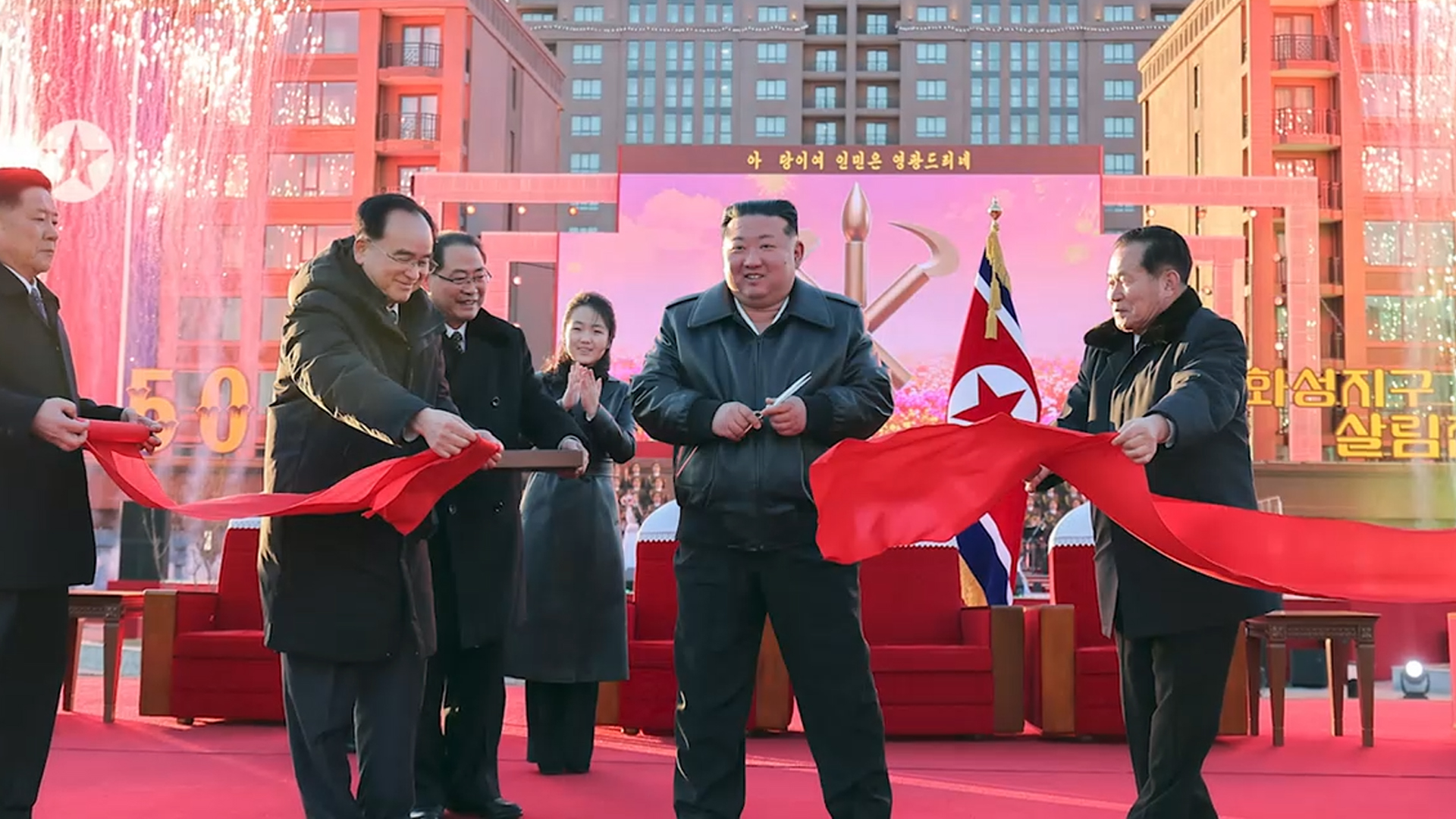 조선중앙통신은 김정은 국무위원장이 참석한 가운데 어제(16일) 평양 화성지구 4단계 1만 세대 주택 준공식이 진행됐다고 보도했습니다.