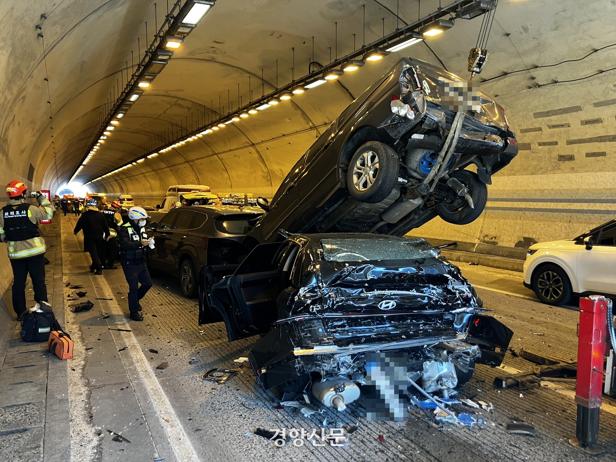 이 사고로 그랜저 차량 운전자 A씨(50대)와 동승자 B씨(50대)가 중상을 입고 병원으로 이송됐다. 또 다른 승용차 탑승자 C씨(10대)는 타박상을 입어 치료를 받고 있다.