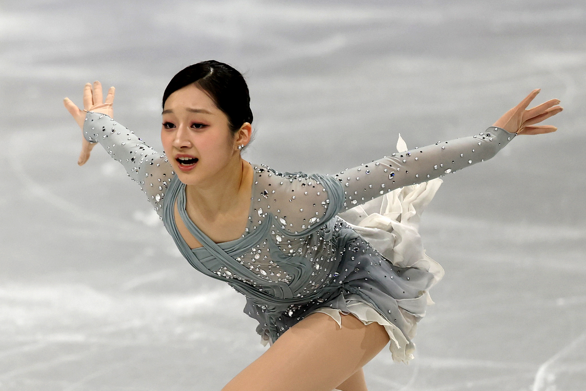 피겨스케이팅 단체전 여자 싱글 신지아가 지난 6일 오전 이탈리아 밀라노 아이스스케이팅 아레나에서 열린 2026 밀라노· 코르티나 담페초 동계올림픽 피겨스케이팅 팀 이벤트 단체전 여자 싱글 쇼트프로그램에서 연기를 하고 있다. 사진=뉴시스 |