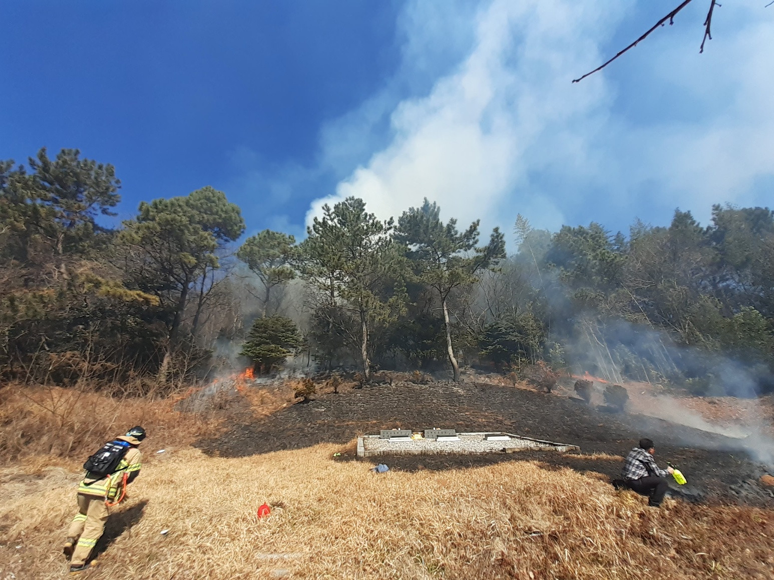 오늘(17일) 오전 11시 5분쯤 전남 해남군 북평면의 한 야산 묘지에서 불이 났습니다.