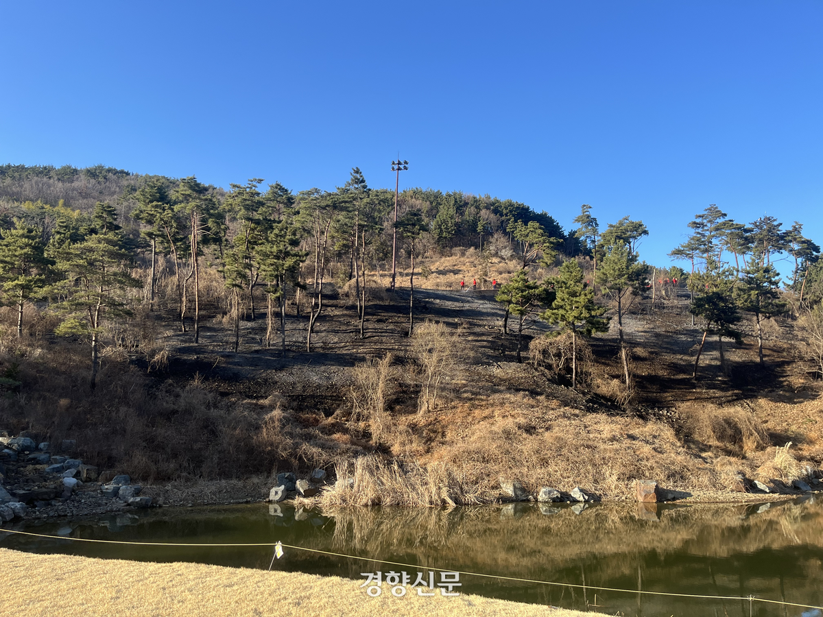 17일 부산 기장군 한 골프장에서 화재가 발생해 잔디 0.75㏊ 가량이 훼손됐다. 부산소방재난본부 제공 |