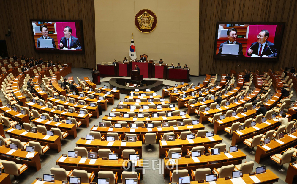 김민석 국무총리가 9일 서울 여의도 국회 본회의에서 열린 정치·외교·통일·안보 대정부질문에서 의원 질의에 답하고 있다. 고이란 기자 photoeran@ |