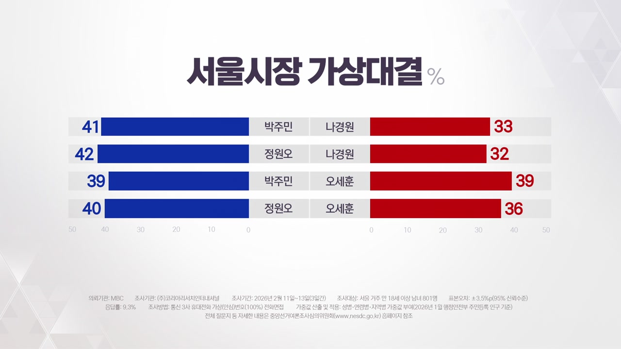 앞서 저희가 양당의 가상대결 모습도 보여드렸는데 가상대결을 붙여봤더니 지금 현직인 오세훈 서울시장이 있음에도 불구하고 정원오 성동구청장이나 박주민 의원의 지지율이 오세훈 서울시장과 동률이거나 앞서는 지지율이 나왔거든요. 이건 어떻게 해석해 봐야 하는 겁니까?