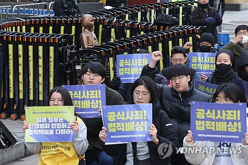 (서울=연합뉴스) 양수연 기자 = 설 연휴 마지막 날인 18일에도 정의기억연대(정의연)는 일본군 '위안부' 문제 해결을 촉구하는 수요시위를 이어갔다.