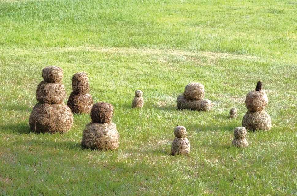 천, 항아리, 마른 꽃, 발효액, 곤충과 곰팡이가 함께 만드는 댄 리의 작품은 미술관을 살아있는 생태계로 바꾼다. 건물 중정인 전시마당에는 풀을 뭉쳐 만든 고사리의 ‘초사람’과 흙을 다져 만든 김주리의 ‘물산’이 펼쳐진다. 겨울에서 봄으로 계절을 나며 작품은 어떻게 서서히 형태를 잃어갈지. 작품이 사그라진 자리에는 어떤 새싹이 움틀지.