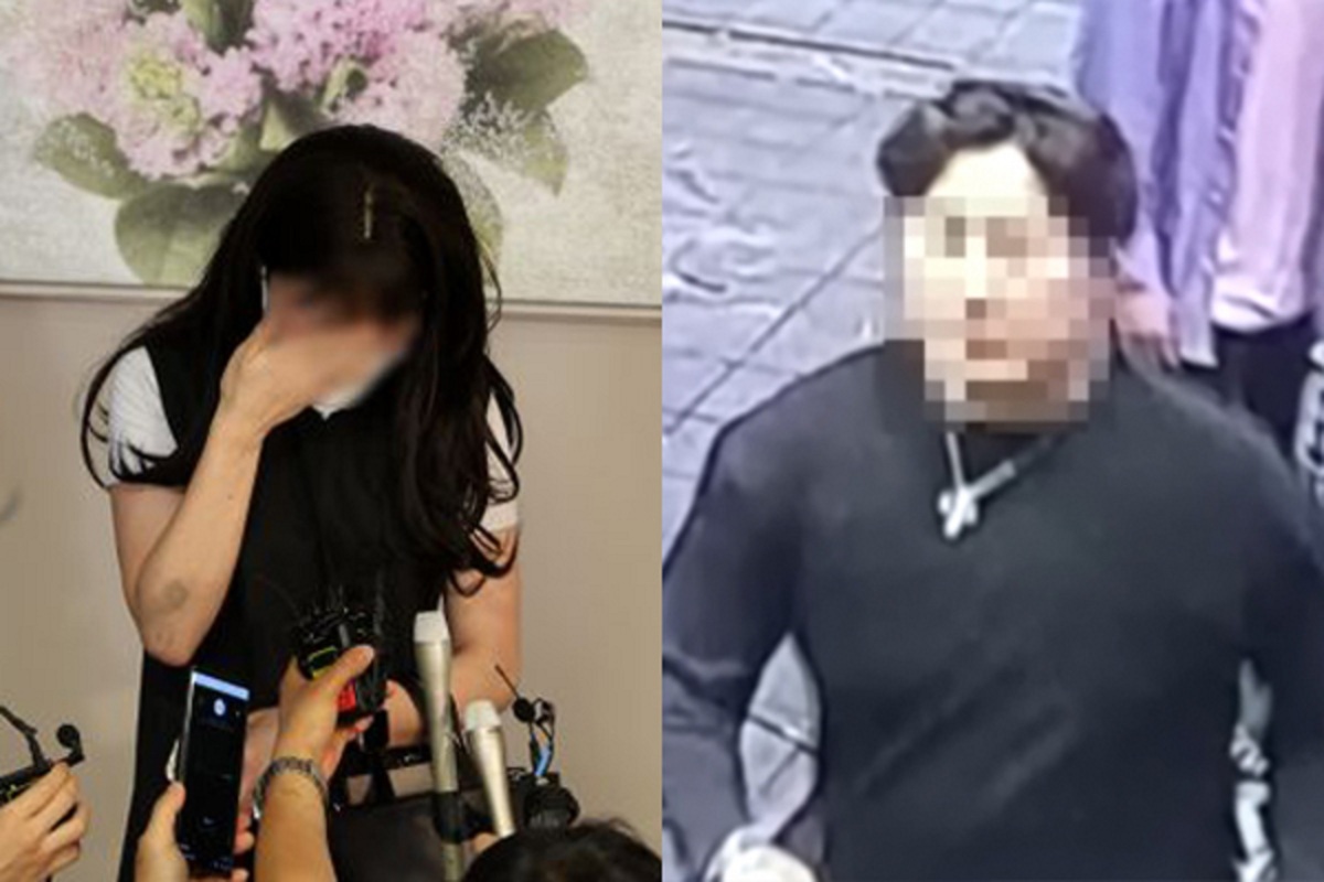 2023년 6월 부산 연제구 부산고등법원에서 열린 ‘부산 돌려차기 사건’ 항소심을 마치고 피해자(왼쪽)가 인터뷰를 하며 눈물을 흘리는 모습. 오른쪽은 가해 남성이 2022년 5월22일 부산진구 한 거리에서 피해자를 따라가는 모습. 연합뉴스·JTBC 보도화면 캡처 |