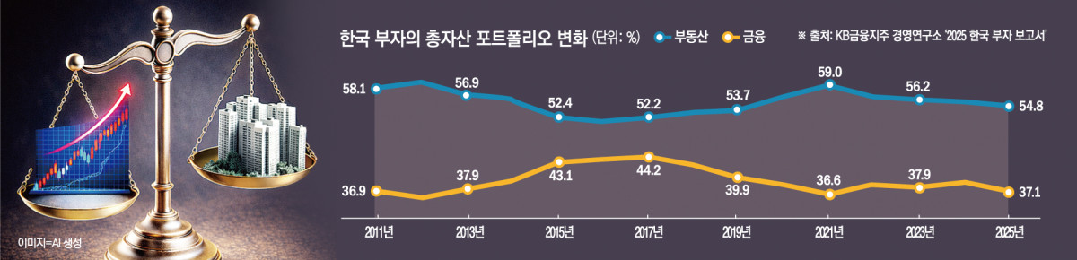 이런 분위기는 실제 지표로도 확인된다. 최근 한국은행이 발표한 ‘1월 금융시장 동향’에 따르면 주택담보대출 잔액은 934조6000억원으로, 전월 대비 감소하며 34개월 만에 하락세로 돌아섰다. 금리 부담과 규제가 지속되면서 추가적인 주택 구매 수요가 억제된 결과로 풀이된다. 특히 최근 1년간 주식 수익률이 부동산 상승률을 웃돌면서 ‘부동산만이 유일한 자산 증식 수단은 아니’라는 학습 효과가 확산되는 모습이다. KB금융지주 경영연구소는 ‘2025 한국 부자 보고서’를 통해 이런 변화를 짚었다. 보고서는 “증시 강세장 속 주식 투자 수익 경험 증가가 양호한 금융투자 성과를 견인했다”며 “지난 15년간 한국 부자는 부동산투자와 상속·증여 중심에서 사업소득과 근로소득, 금융투자 이익으로 부를 이룬 경우가 늘었다”고 분석했다