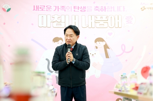 이성헌 서대문구청장이 지난해 11월 홍은동 서대문 내품애센터에서 열린 유실·유기동물 입양식에서 인사말을 하고 있다. 서대문구 제공 |