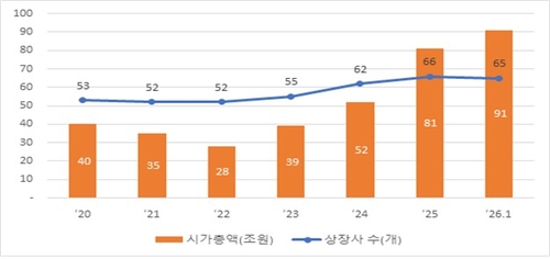 (대전=연합뉴스) 박주영 기자 = 대전테크노파크는 지난달 기준 대전 지역 상장기업의 시가총액이 91조8천529억원으로 역대 최고치를 기록했다고 19일 밝혔다.