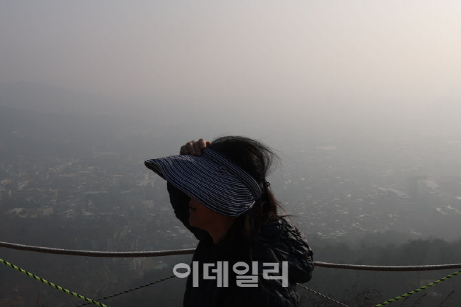 미세먼지와 초미세먼지 농도가 '나쁨' 수준을 보이는 12일 서울 종로구 인왕산에서 바라본 도심하늘이 뿌옇게 보이고 있다.(사진=이영훈 기자) |