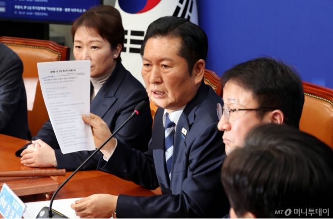 [서울=뉴시스] 조성봉 기자 = 정청래 더불어민주당 대표가 19일 오후 서울 여의도 국회에서 열린 최고위원회에서 '윤석열 전 대통령 내란 우두머리 혐의 사건 1심 선고' 관련 입장 발표를 하고 있다. 정 대표는 사형 아닌 무기징역 선고에 유감을 밝히며 매우 미흡한 판결이라고 지적했다. 2026.02.19. suncho21@newsis.com /사진=조성봉 |