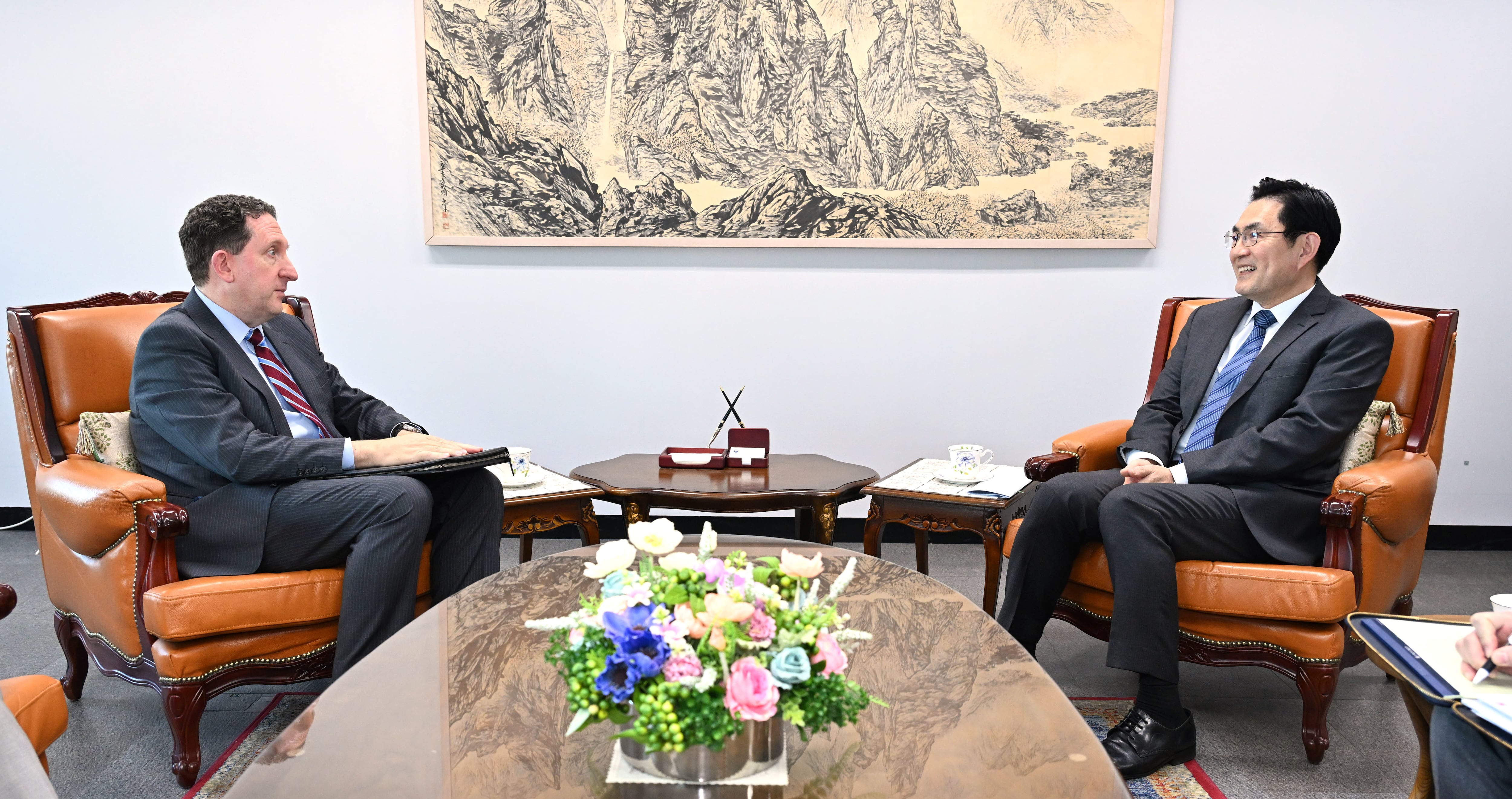 정연두 외교전략정보본부장이 19일 외교부에서 제임스 헬러 주한 미국 대사대리를 접견하고 있다. /외교부 |