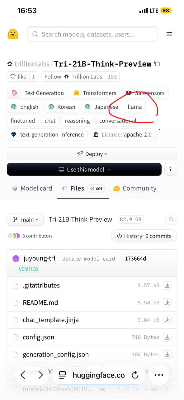오늘 오후 4시 53분 허깅페이스 저장소에 있는 Tri 21B Think 코드설명서. 출처=모티프측 |