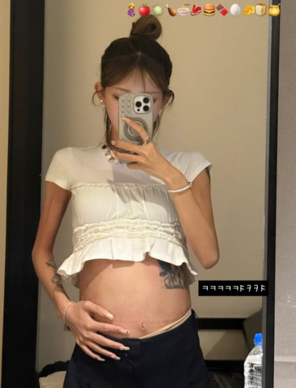 19일 최준희는 개인 계정에 "나 너무 잘 먹었나", "배가 이렇게 나올 수 있는 거냐"며 사진 한 장을 게재했다.