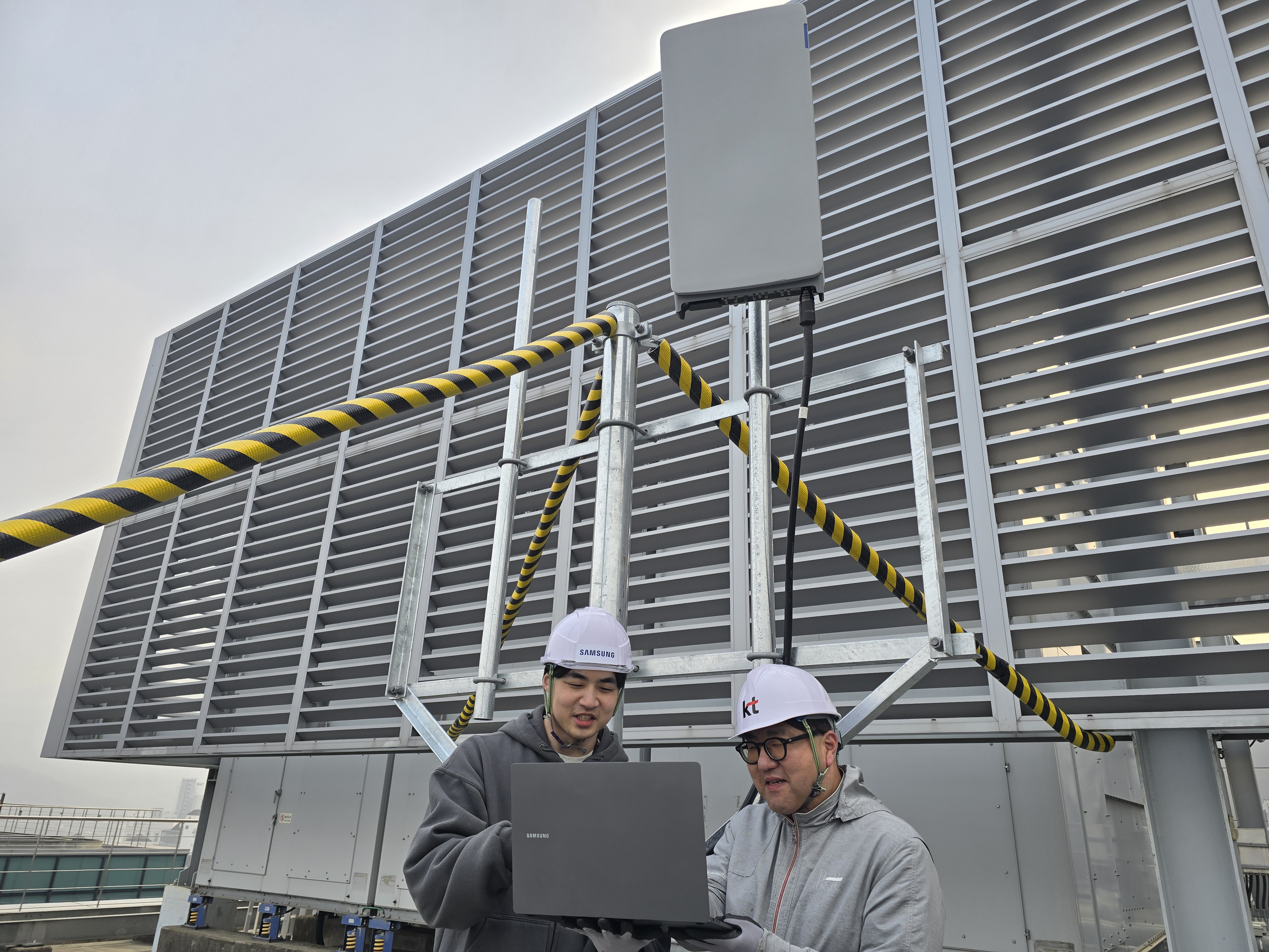 KT가 삼성전자와 함께 개발한 7GHz 초고집적 다중 안테나 기술 검증을 진행했다./사진=KT |