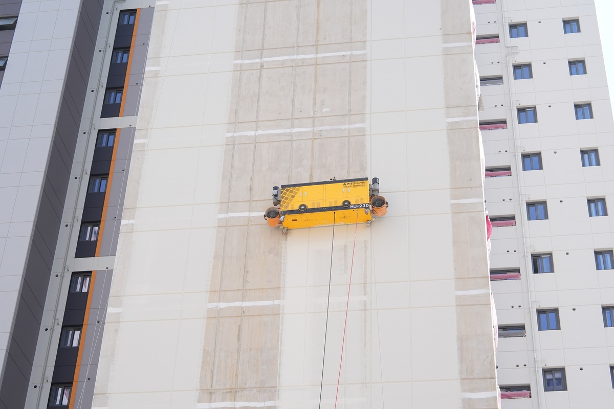 외벽 도장 로봇은 2020년부터 연구개발과 현장 실증을 거쳐 완성됐다. 장비는 자세 제어 기능과 비산(도장 작업 중 도료가 공기 중으로 흩어져 주변으로 퍼지는 현상) 방지 시스템이 탑재됐고, 수평 자동 제어 센서를 통해 일정 각도 이상의 변위가 발생할 경우 즉각 보정되도록 설계됐다.