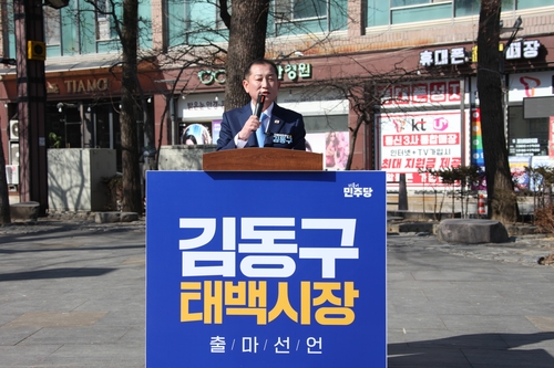 (태백=연합뉴스) 류호준 기자 = 김동구 더불어민주당 중앙당 부대변인이 6·3 지방선거 태백시장 선거 출마를 선언했다.
