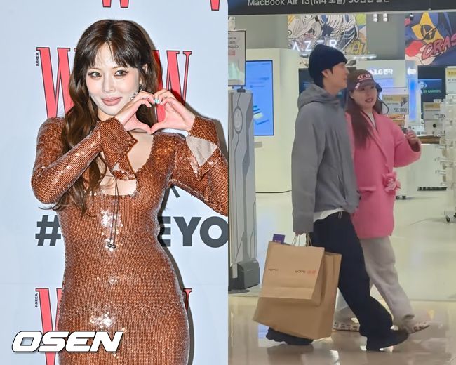 두 사람은 주위를 의식하지 않고 대화를 나누며 쇼핑몰을 걸어다녔다. 다만 핑크색 재킷을 입은 현아가 이전과 달리 살이 오른 모습이라 또 다시 임신설이 불거졌다.