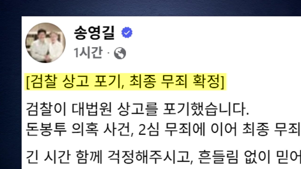 송 전 대표는 오늘(20일) SNS에 긴 시간 함께 걱정하며 흔들림 없이 믿어준 많은 분의 성원에 깊이 감사드린다고 적었습니다.