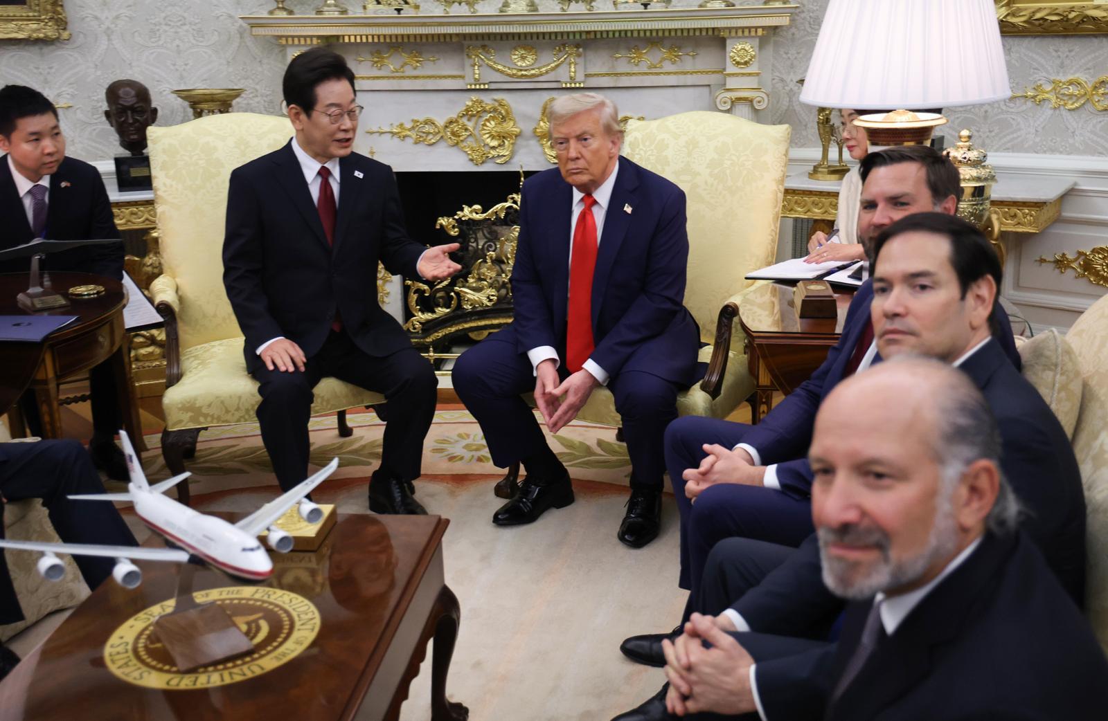 이재명 대통령과 도널드 트럼프 미국 대통령이 25일(현지시간) 워싱턴 백악관에서 한미 정상회담을 열고 있다. 워싱턴=송은석 기자 silverstone@donga.com |