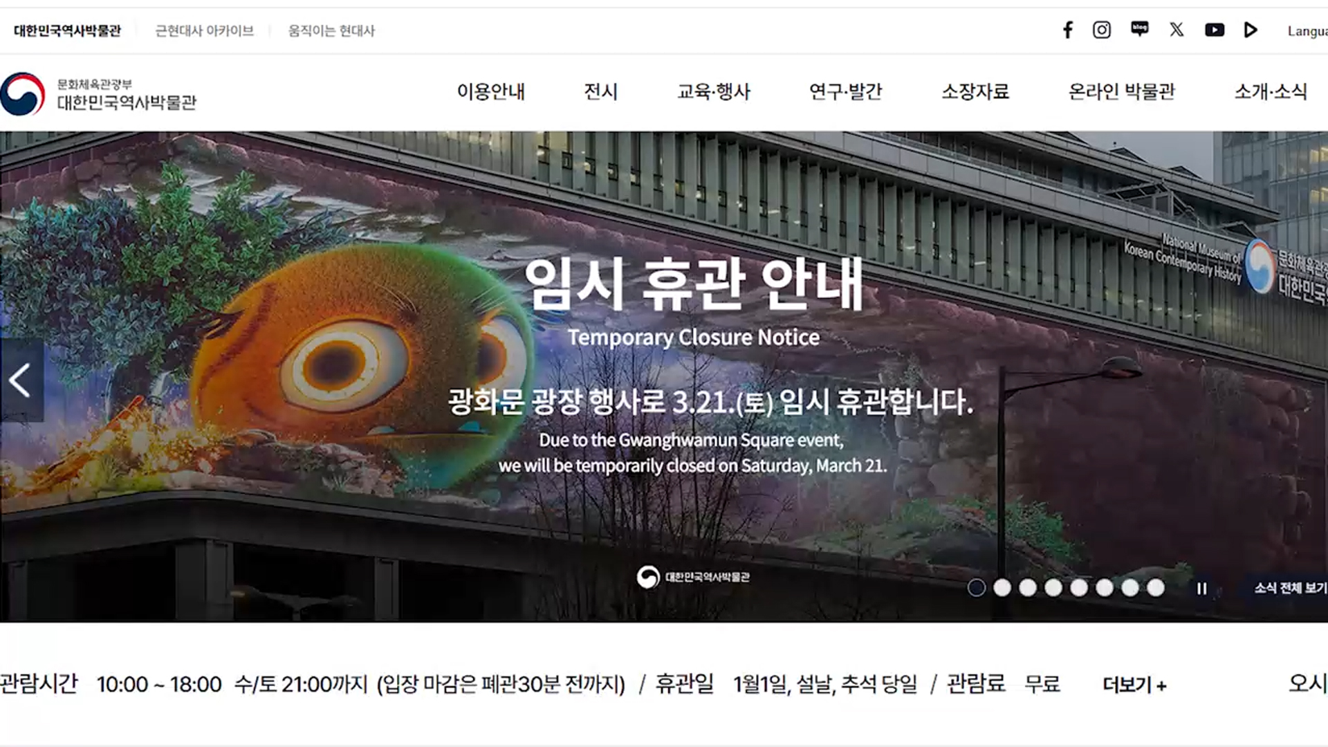 대한민국역사박물관은 "광화문 광장 행사로 3월 21일 토요일 임시 휴관할 예정"이라고 밝혔습니다.