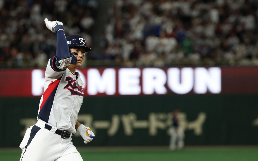 마지막 이닝이던 7회초, 한화 투수 황준서가 나섰다. 문현빈의 볼넷, 황준서의 폭투, 김형준의 볼넷으로 무사 1, 2루. 다음 타자였던 김주원은 큼지막한 좌월 쓰리런 홈런을 때려냈다. 대표팀이 5-2로 역전하는 순간이었다.